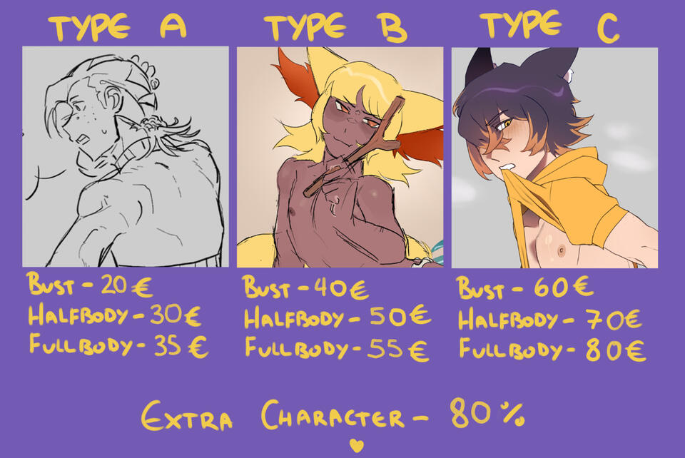 (Refs come with 1 fullbody and 2 headshots. every extra will be charged acordingly)